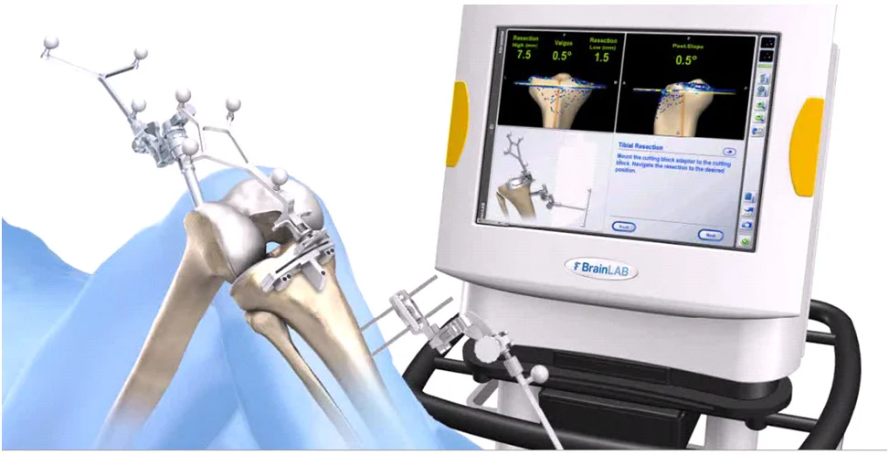Dr Randhawa will use computer navigated knee replacement to accurately assess the level of bony cuts, alignment of your knee pre and post-surgery and final prostheses size.